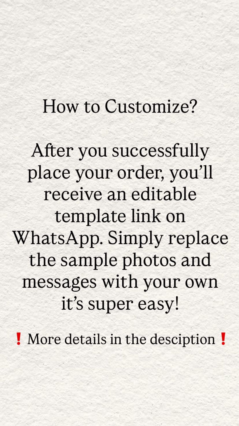 Once you place your order, you’ll receive a WhatsApp link on the number provided during checkout. Use it to upload your photos and other details
